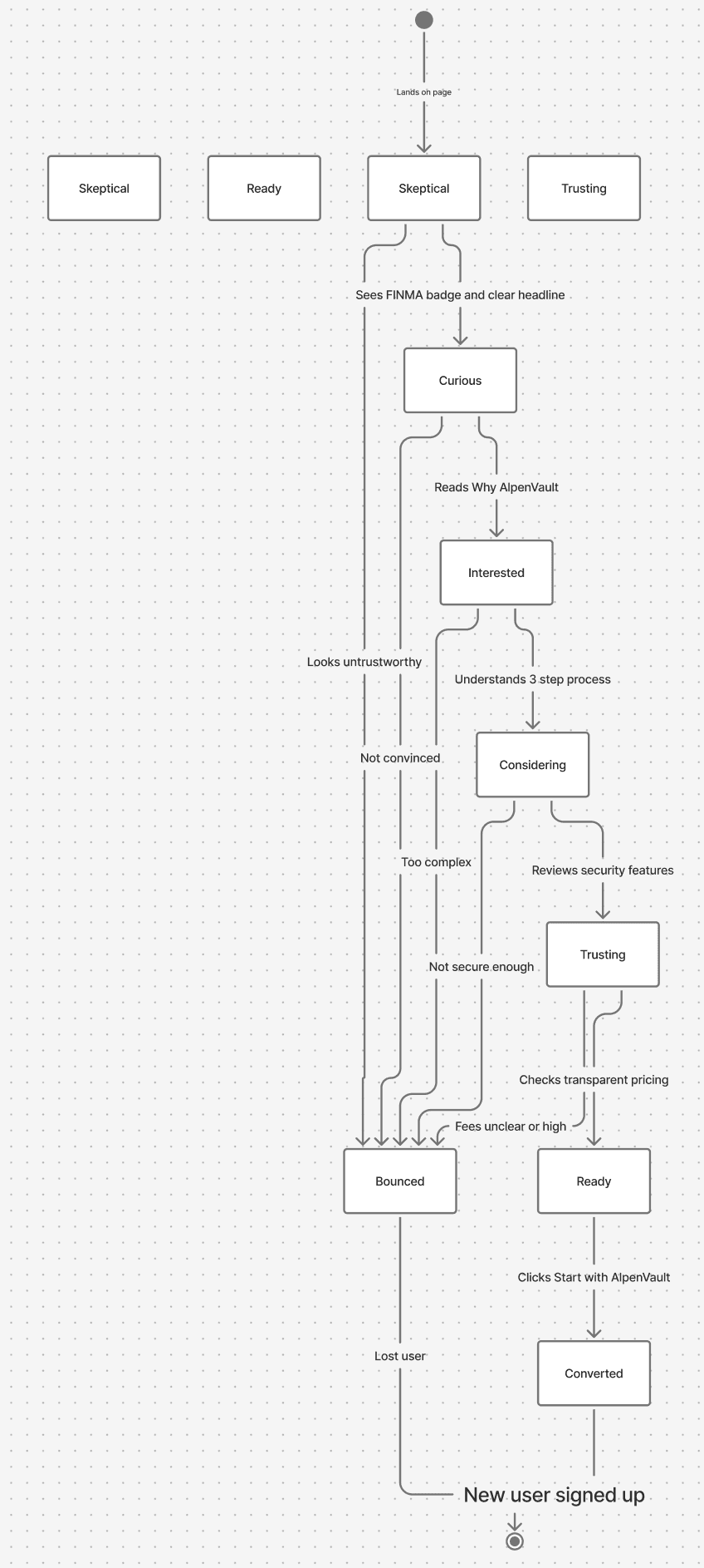 Digital asset management is often high-stress. To build a truly "Swiss" experience, I mapped the UI against four critical User Trust States. This ensured that at every point of friction—like high-security onboarding or large asset transfers—the interface provides the necessary "Trust Signals."